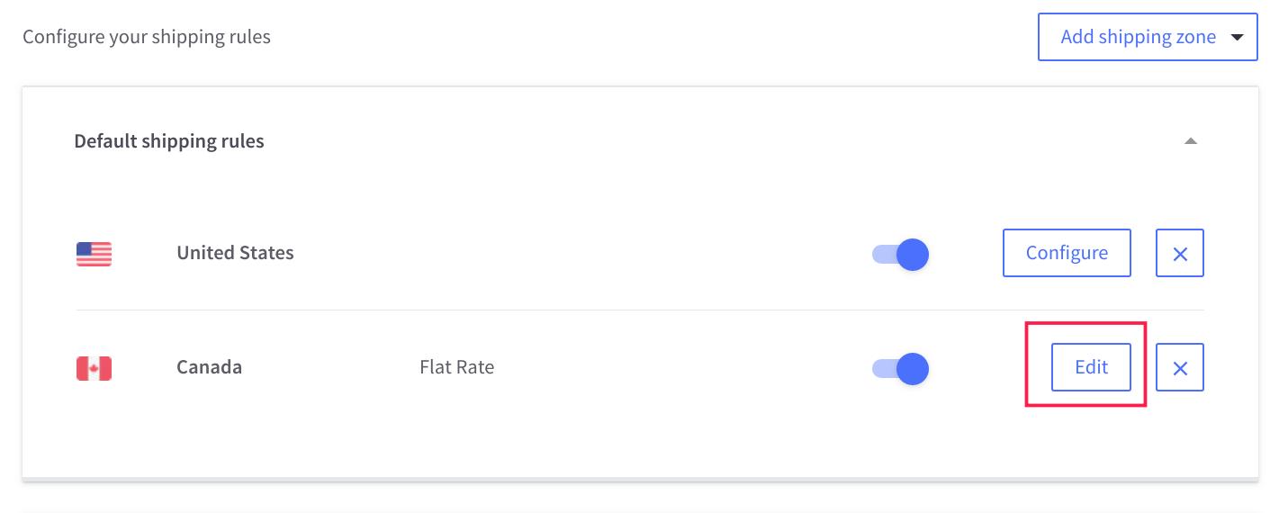 - Now login to your BigCommerce store admin page, find the shipping settings under "Store Setup". Depends on your shipping setting, you can config all zones to use EMS live rate, or just one zone. Click "Edit" button next to the shipping zone that you want to use EMS live rate: